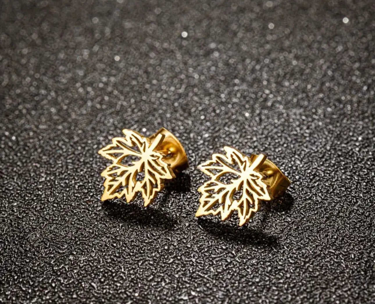 18K Gold Plated Maple Leaf Stud Earrings